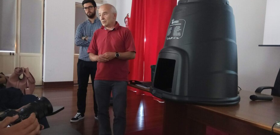 Foi então distribuído o kit de compostagem doméstica: constituído por compostor e pequeno contentor de resíduos orgânicos.
