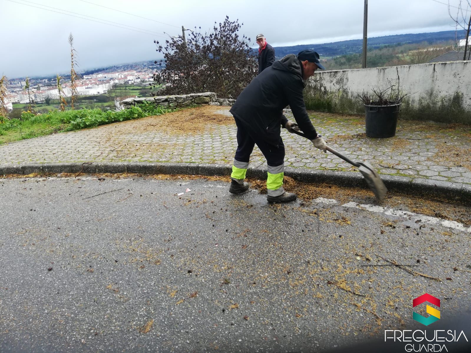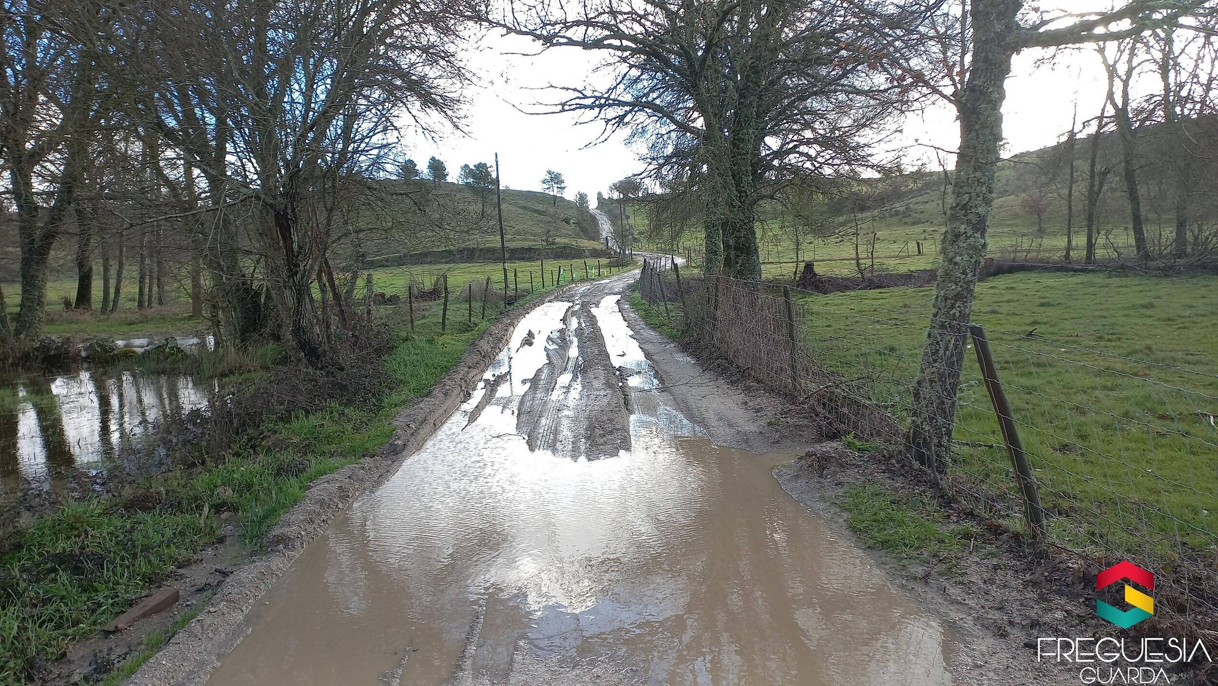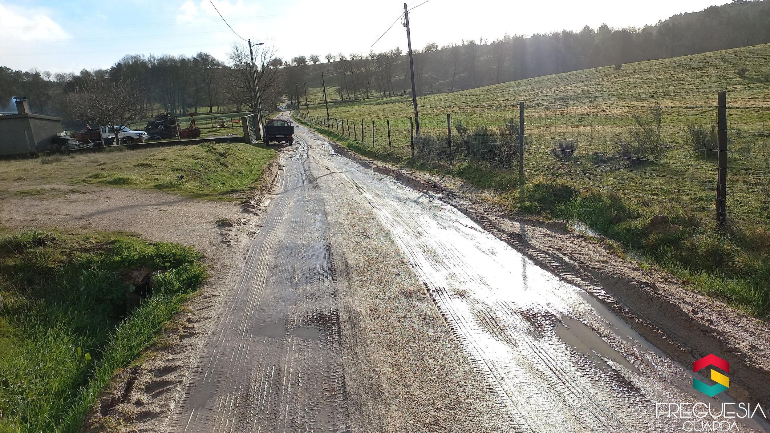 Não obstante as condições atmosféricas mas aproveitando o tempo sem chuva ou neve colocámos algum tout-venant no caminho das terras e no Rio-Diz sabendo que é uma solução transitória por que nos caminhos em terra batida há alguma dificuldade com as chuvas em mantê-los em boas condições para o seu uso pelas viaturas.