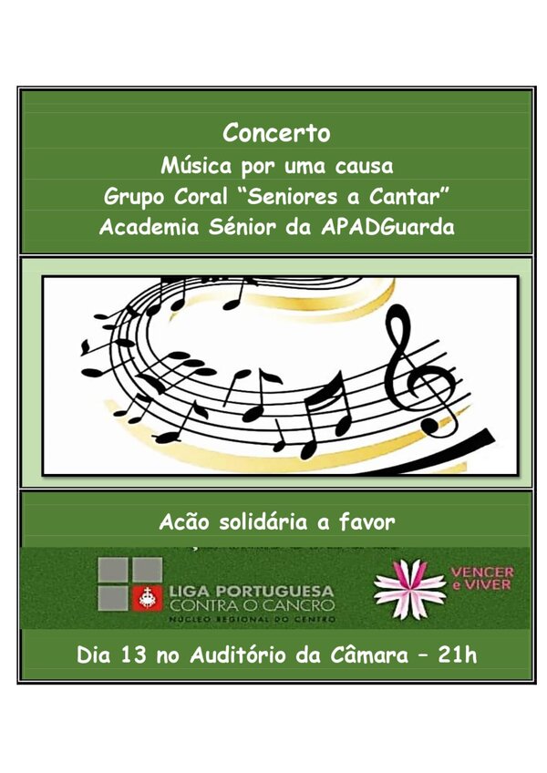 Dia 13, às 21h, no auditório da Câmara, vai decorrer um concerto "Música por uma causa" a favor da Liga Portuguesa Contra o ... -