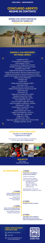 Candidaturas abertas para a força aérea até dia 30 de janeiro. Requesitos: Até aos 27 anos com uma ... -