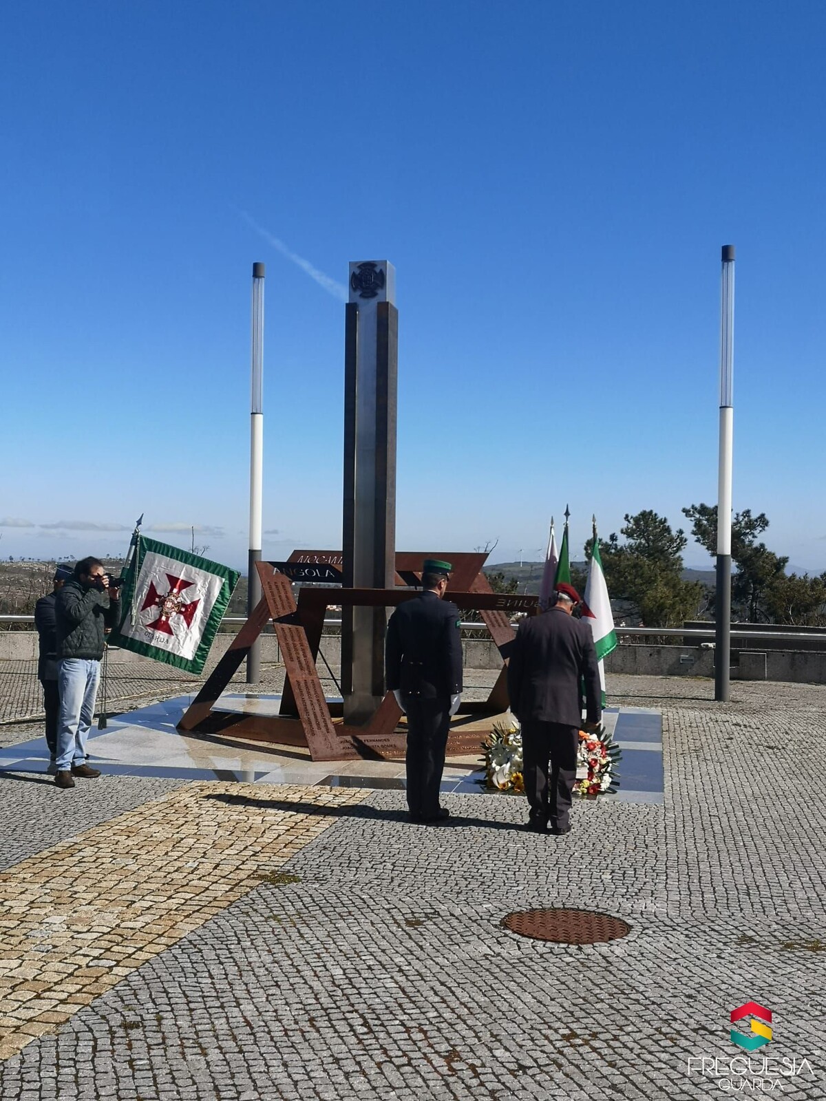 Seguiram-se a deposição de duas coroas de flores junto do monumento pelo responsável da UEPS e pela Vice-Presidente da Câmara Municipal da Guarda. Após os toques de homenagem dos que feneceram na ação bélica e à alvorada, deu-se por encerrada a sessão que contou com a presença de alguns associados e dirigentes da liga na Guarda e dos Comandantes da PSP, GNR e UEPS.