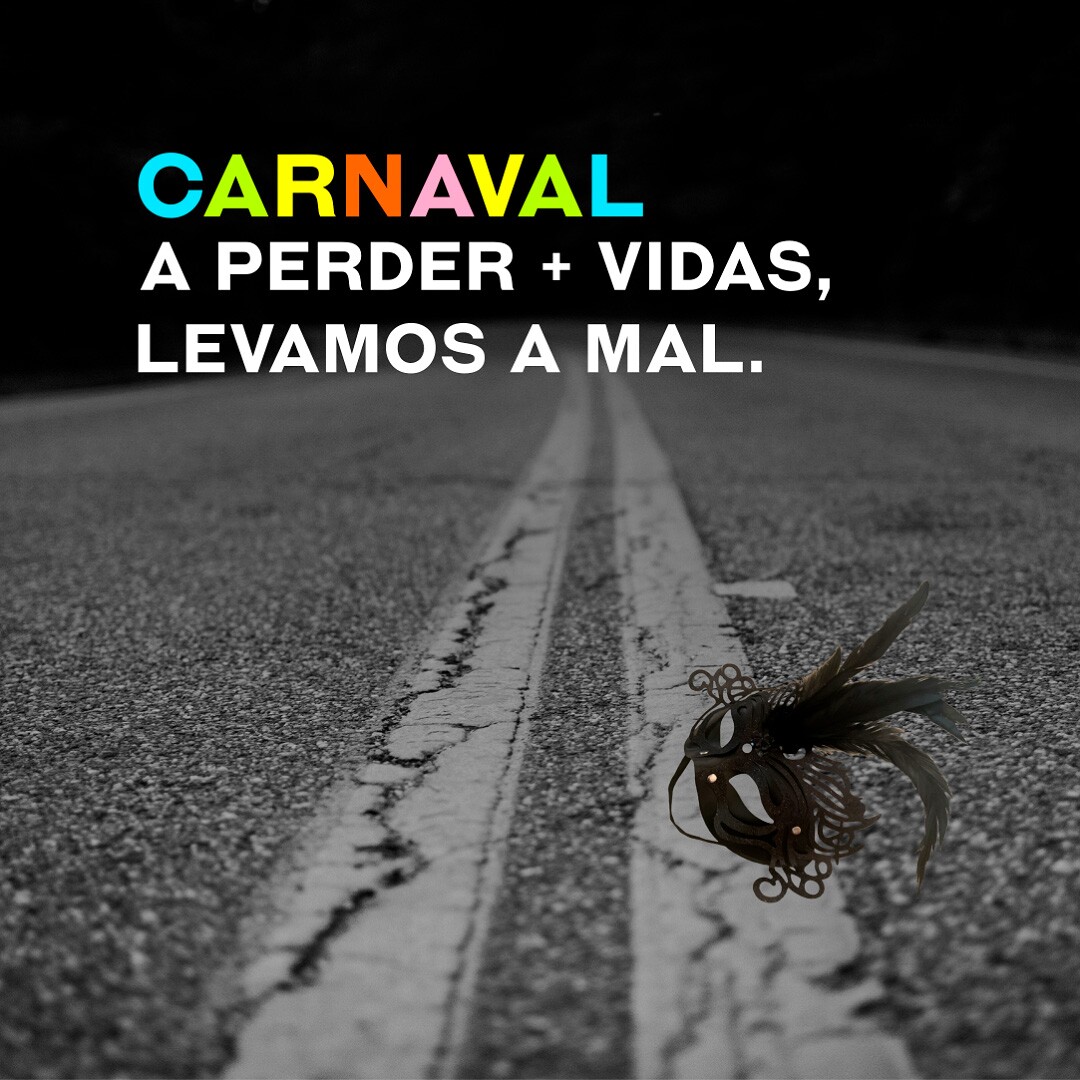 Divulgamos a campanha de Carnaval "A perder + vidas levamos a mal", que decorre de 17 a 22 de fevereiro de 2023 e tem por objetivo reforçar o apelo à adoção de comportamentos seguros na estrada, como viajar sem pressa, sem álcool, sem telemóvel.