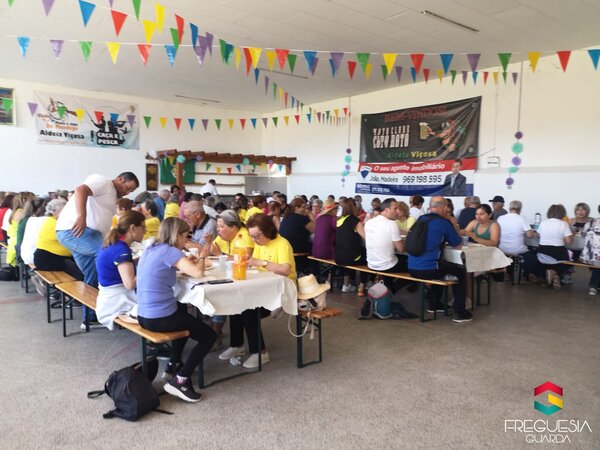 O almoço foi no salão de convívio de Aldeia Viçosa com a boa colaboração da Junta de Freguesia, que depois convidou todos os participantes a uma ida à Igreja Matriz para apreciarem a pintura do mestre Grão Vasco e ficarem a conhecer algo mais sobre a história e as tradições daquela freguesia.