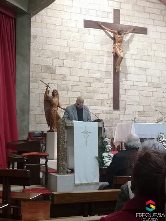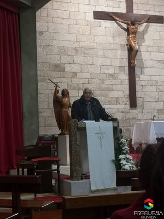 A cerimónia teve primeiro a Eucaristia presidida pelo Reverendo Bispo da Guarda, D. Manuel Rocha Felício, após a qual se seguiu um conjunto de três intervenções por parte da Irmã Fonseca, dirigente atual do Outeiro de São Miguel, depois do irmão homenageado, também padre e exímio conhecedor da arte musical, o Padre Manuel Geada Pinto, que relatou como toda a obra foi organizada com o labor da Irmã Gaspar, que guardara “religiosamente” todo o trabalho que o Cónego José Geada Pinto ia concretizando. Lembrou ainda que este dedicou mais de 60 anos à direção do “Outeiro”. A finalizar, ainda escutámos as intervenções do Presidente da Câmara Municipal da Guarda e do Senhor Bispo. Relevo ainda para o grupo Coral, que acompanhou soberanamente com obras do Cónego Geada Pinto, a missa celebrada ao início da sessão.