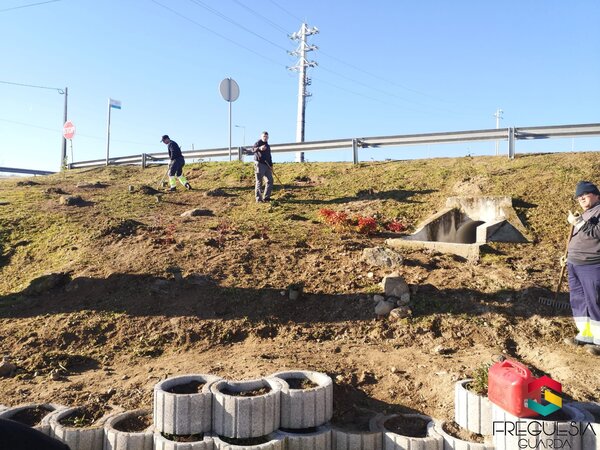 Nos Galegos e junto à Casa do Povo, para além da obra de colocação de um forno e uma churrasqueira, iniciámos o alindamento do talude que suporta o arruamento e faz a divisão com a área de empedrado/estacionamento contíguo ao edificado. Neste talude estabelecemos já a passagem pedonal que ligará o talude à área reservada à eira e procuraremos deixar, ainda este ano, o resto do talude devidamente arborizado e alindado com outras espécies arbustivas qualificando todo o edificado.