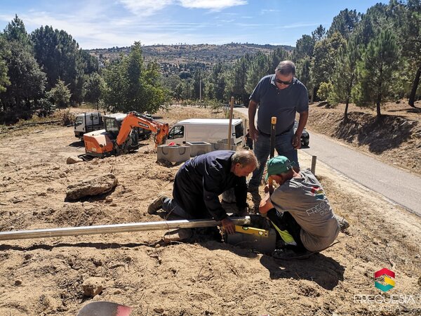 Realizámos a limpeza da vegetação que cresceu para o caminho rural Guarda/Vale de Estrela. Continuámos também no terreno de Noéme de Baixo, com a preparação do terreno para acomodar, posteriormente, os painéis fotovoltaicos que alimentarão a bomba submersível a colocar no furo já executado para podermos aceder à água existente no subsolo.
