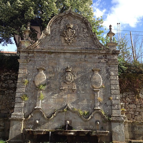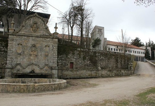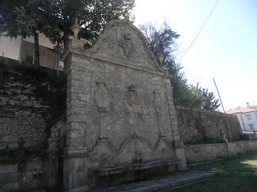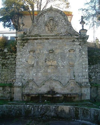 Toda esta estrutura está adossada a um muro, encontrando-se o depósito de água na zona posterior, o que define um espaço preenchido por um murete, mais baixo e ligeiramente recuado em relação à face do Chafariz. O tanque circular, implantado no adro fronteiro, serviria, possivelmente, para o gado.
