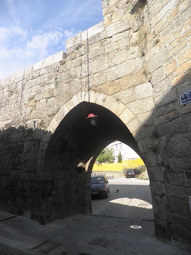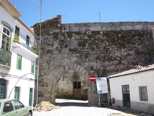 Uma das antigas portas da cidade, em pedra e estilo gótico, junto à qual ainda se encontra um troços de muralha.